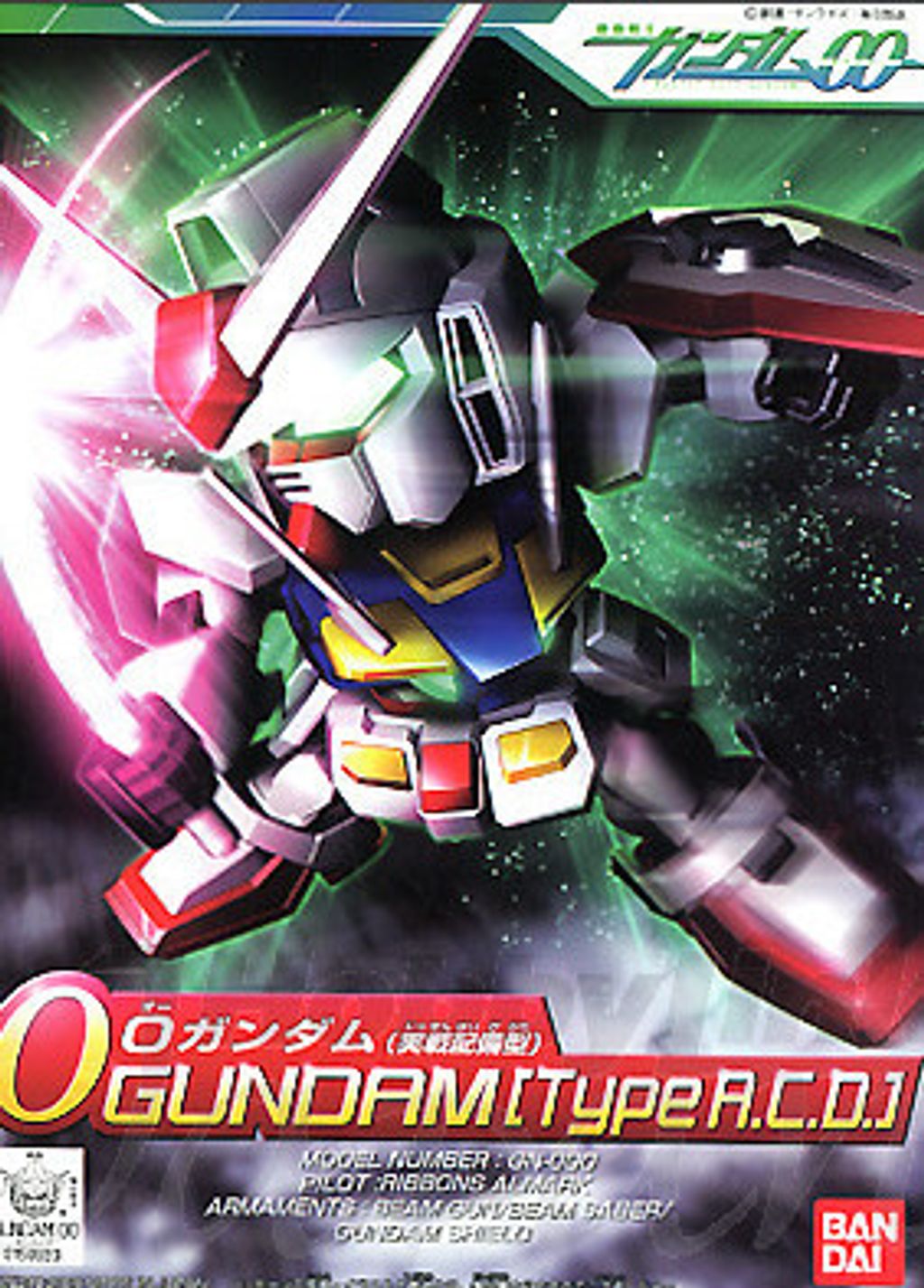 Super little super-deformed O Gundam Type A.C.D., molded in colored plastic and featuring snap-fit assembly. Great for younger modellers, beginner modellers, or anyone who just wants to keep his or her hands busy for a while! Foil stickers are included for decoration.
