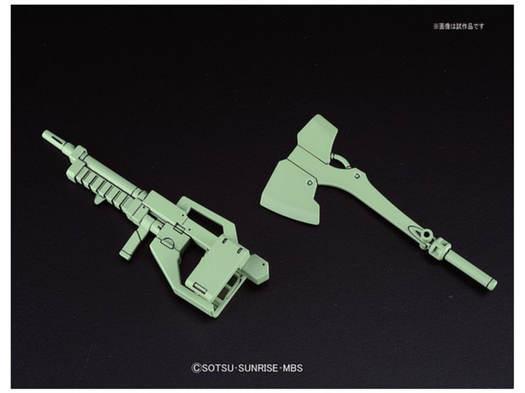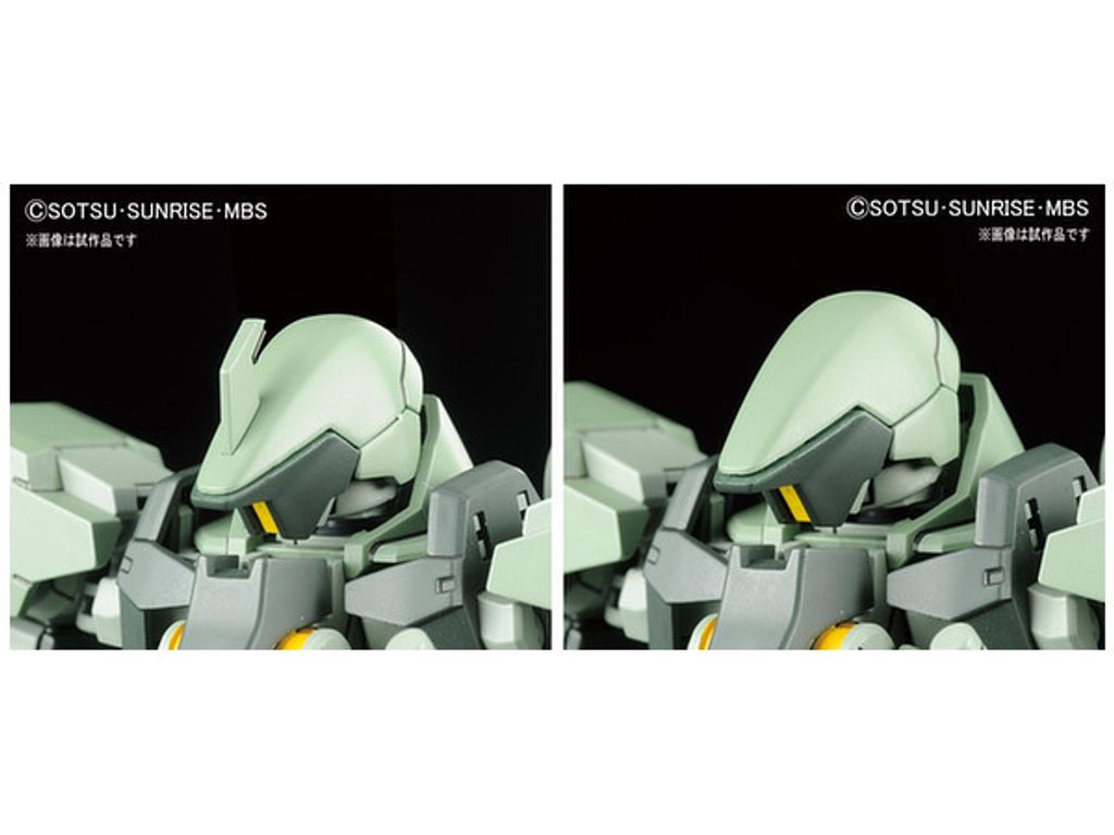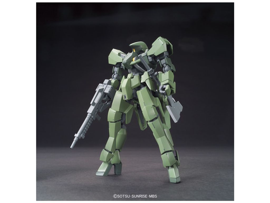 The Graze is the mass-produced mobile suit used by the enemy Gjallarhorn unit in "Mobile Suit Gundam: Iron-Blooded Orphans." It carries heavy armaments and equipment which can vary according to its intended use. This HG version can be built into one of two different versions; the head cockpit can open and close, and weaponry will be included as well. Molded in dark green, lighter green, and two shades of gray; foil stickers are included for the markings.