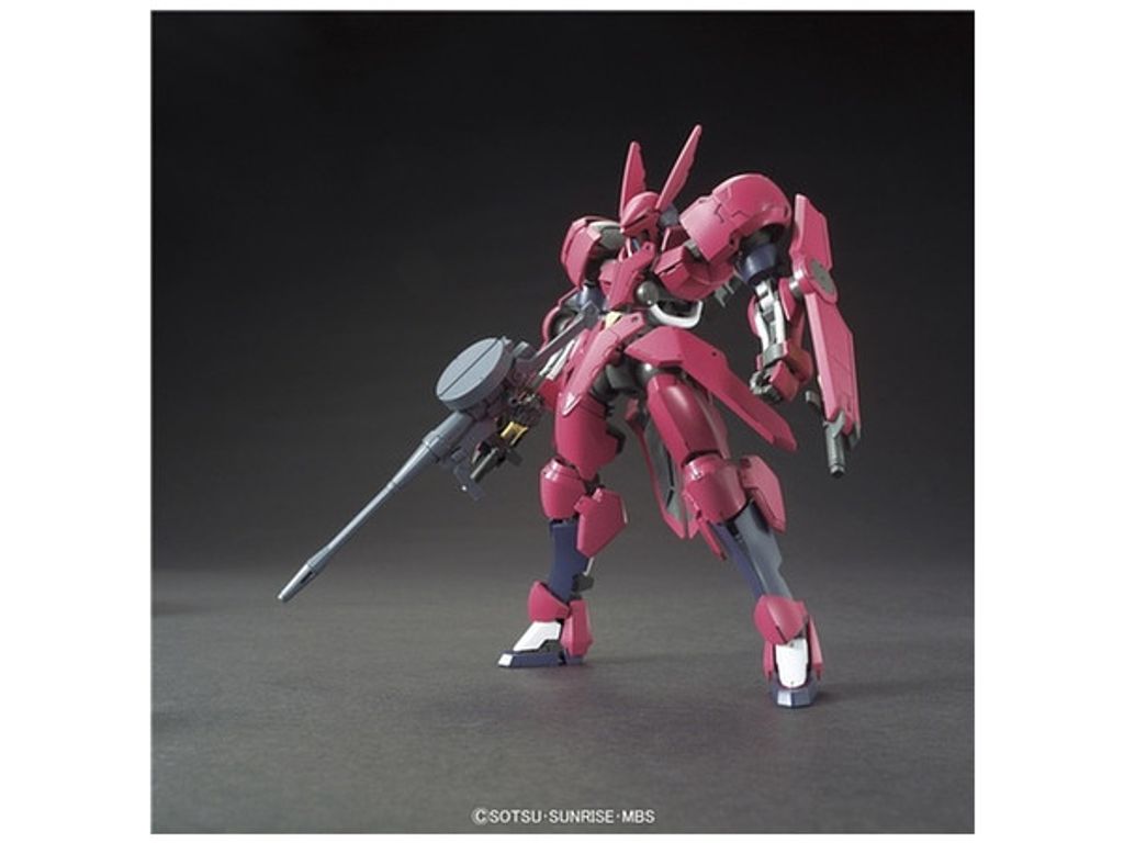 McGillis Fareed from the hit series "Mobile Suit Gundam: Iron-Blooded Orphans" dons a mask and gets a new mobile suit to pilot, the Grimgerde! Based on the Valkyrie frame, the Grimgerde comes equipped with two Valkyrie shields, two Valkyrie blades and a Valkyrie rifle! Parts for this kit come sharply molded in multiple colors with foil stickers included to add extra color. The Valkyrie blades also come molded in gold colored plastic!