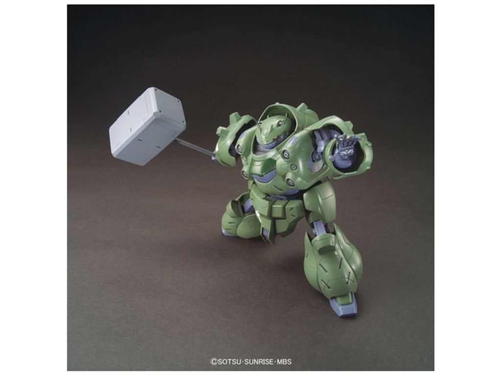 This big mobile suit comes with a big hammer! Ready to smash away at your other Gundam kits. From the hit anime series “Iron-Blooded Orphans” its the Gusion! Piloted by Kudaru Kaderu from the Brewers. Parts come molded in multiple colors and includes a sheet of foil marking stickers.