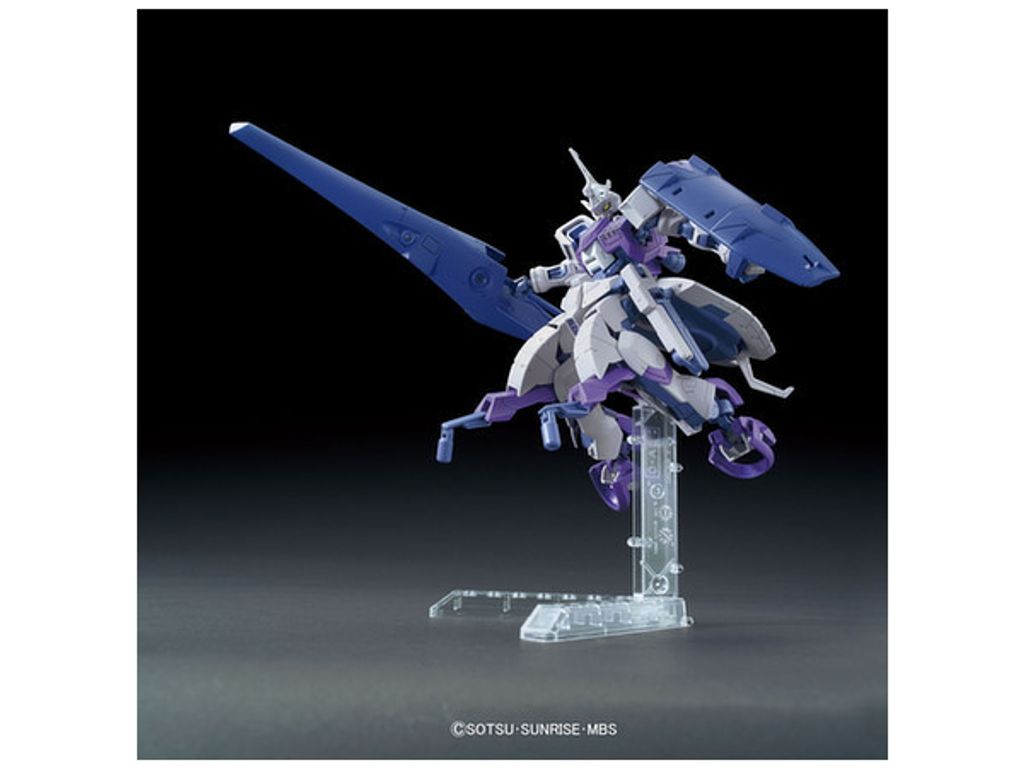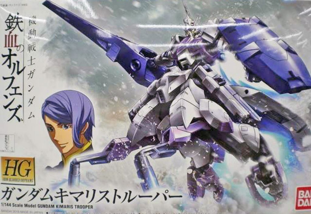 This kit of the Gundam Kimaris Trooper from "Mobile Suit Gundam: Iron-Blooded Orphans" is molded in three shades of violet, pale gray, white and clear plastic, and includes foil stickers for the markings. Parts for a stand are included, too!