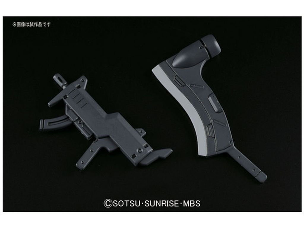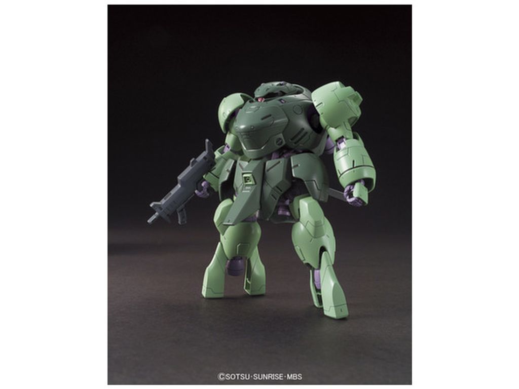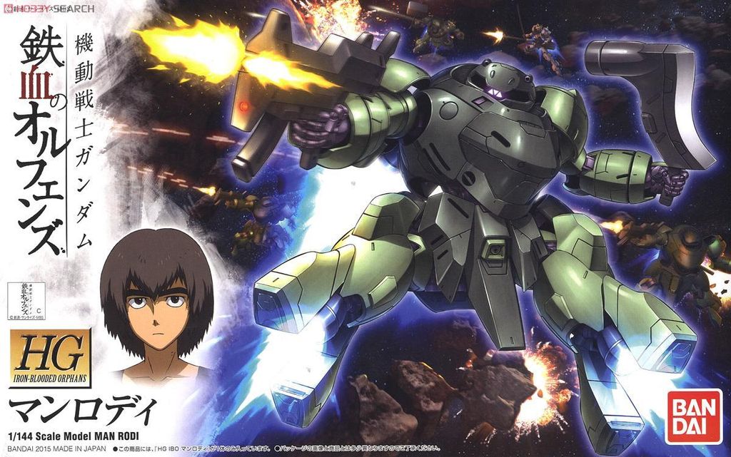 It's the Man Rodi from the anime series "Iron-Blooded Orphans"!  This cool looking big green suit comes equipped with a beam rifle and a big axe ready to go into action.  Parts come molded in multiple colors and includes a small sticker sheet for the eye.