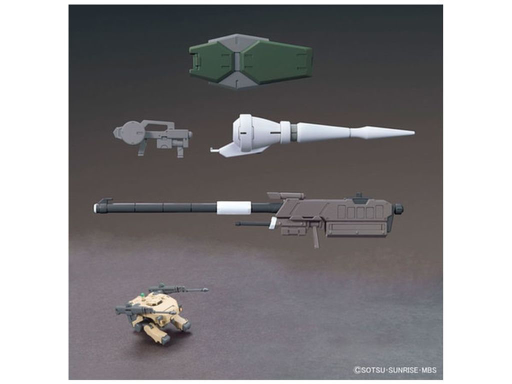 With this set you can build additional weapons for your HG model (a long range artillery rifle, a lance unit, and a shield), plus a mobile worker!  Parts are molded in dark gray, with foil stickers for the details.